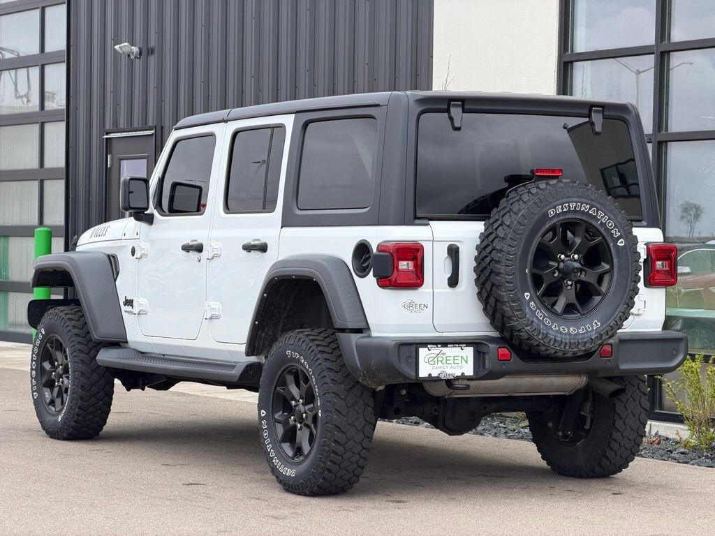 Built Wild! Bright White Clearcoat 2021 Jeep Wrangler Unlimited Willys 4WD 8-Speed Automatic 2.0L I4 DOHC APPLE CARPLAY, ANDROID AUTO, AUTOMATIC HEADLIGHTS, CRUISE CONTROL, ACTIVE PARK ASSIST, BACKUP CAMERA, BLUETOOTH HANDS-FREE, KEYLESS ACCESS WITH PUSH BUTTON START, HEATED SEATS, TOUCHSCREEN CONTROLS, VOICE RECOGNITION, Wrangler Unlimited Willys, 4D Sport Utility, 2.0L I4 DOHC, 8-Speed Automatic, 4WD, Bright White Clearcoat, Black Cloth, 3.45 Rear Axle Ratio, 4-Wheel Disc Brakes, 4-Wheel Drive Swing Gate Decal, 7.0" Touchscreen Display, 8.4" Radio & Premium Audio Group, ABS brakes, Air Conditioning, Air Conditioning w/Auto Temperature Control, Air Filtering, Alpine Premium Audio System, Anti-Spin Differential Rear Axle, Apple CarPlay, Auto-Dimming Rear-View Mirror, Automatic Headlamps, Black Grille, Black Trail Rated Badge, Blind Spot & Cross Path Detection, Cluster 7.0" TFT Color Display, Cold Weather Group, Convenience Group, Deep Tint Sunscreen Windows, Dual front impact airbags, Dual front side impact airbags, Electronic Stability Control, Emergency/Assistance Call, For More Info, Call 800-643-2112, Front 1-Touch Down Power Windows, Front LED Fog Lamps, Google Android Auto, GPS Antenna Input, Heated Front Seats, Heated Steering Wheel, Injection Molded Black Rear Bumper, Integrated Center Stack Radio, Leather Wrapped Steering Wheel, LED Headlamp & Fog Lamp Group, LED Premium Reflector Headlamps, LED Taillamps, Matte Black Jeep Badge, Mold In Color Bumper w/Gloss Black, MOPAR All-Weather Floor Mats, Normal Duty Suspension, Outside temperature display, ParkSense Rear Park Assist System, ParkView Rear Back-Up Camera, Power Heated Mirrors, Power steering, Quick Order Package 22W Willys, Radio: Uconnect 4 w/7" Display, Rear Window Defroster, Remote Keyless Entry, Safety Group, Security Alarm, SiriusXM Radio Service, SiriusXM Satellite Radio, Speed control, Speed Sensitive Power Locks, Steering wheel mounted audio controls, Sun Visors w/Illuminated Vanity Mirrors, Technology Group, Traction control, Universal Garage Door Opener, USB Host Flip, Variably intermittent wipers, Wheels: 17" x 7.5" Moab Black Aluminum, Willys, Willys Hood Decal, Wrangler Decal.